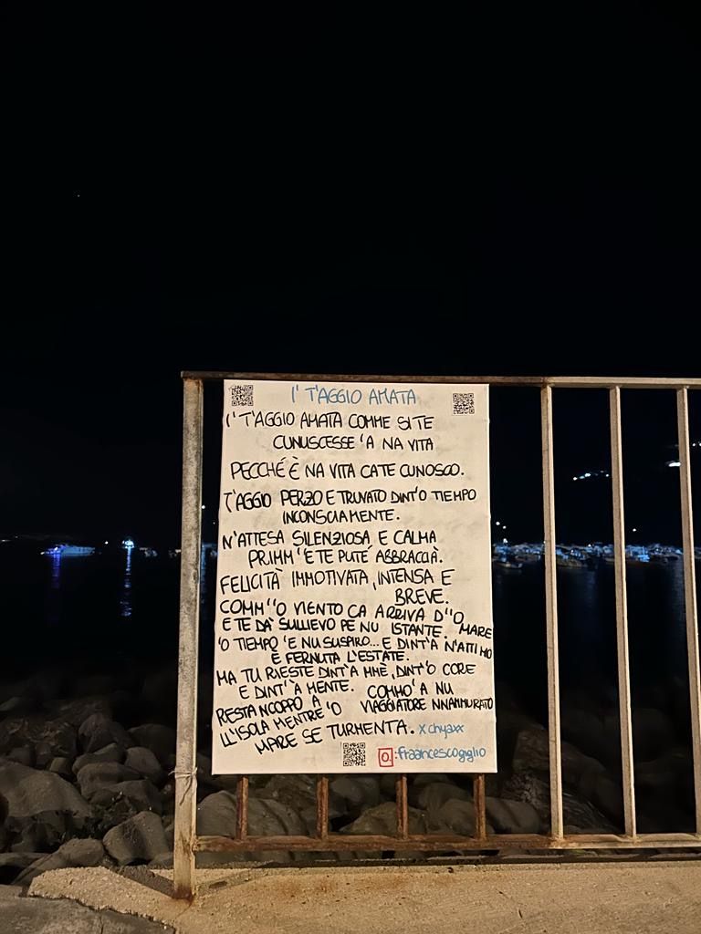 Questa scritta è comparsa sul pontile del Castello Aragonese di Ischia nell’estate 2023. L'autore della poesia è Francesco Giglio.