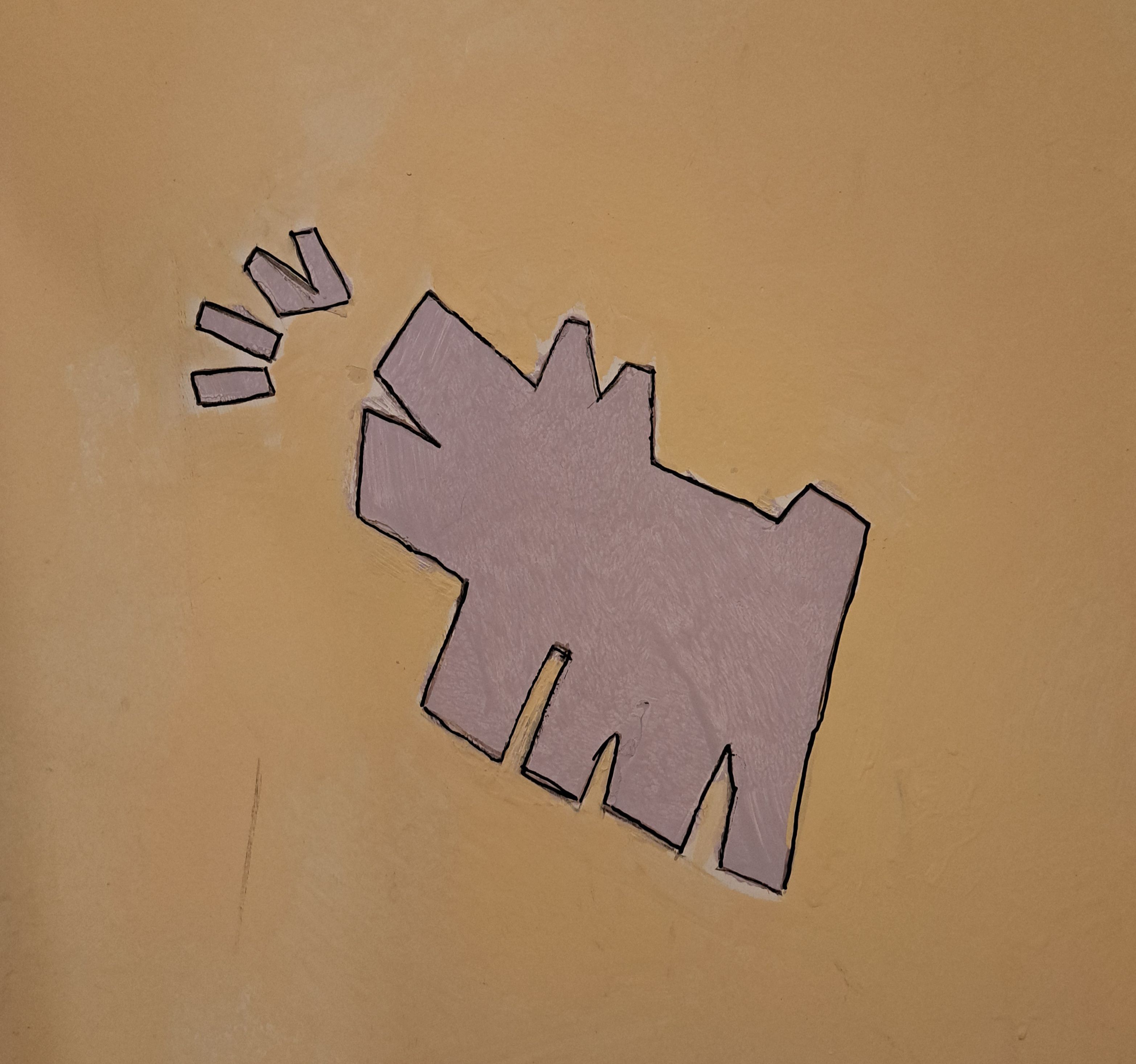 Questo è il muro dello sgabuzzino di casa mia. Il disegno, ispirato al cane realizzato da Bansky, è stato fatto con con uno stencil disegnato, ritagliato e poi dipinto da me e mio padre, o meglio "mio babbo", quando ero piccola. Mia mamma, poi, ci ha aggiunto il contorno, percheé, come sempre, io e lui eravamo stati "troppo precipitosi e sprecisi". Da qual giorno, non abbiamo più voluto dipingere nuovamente il muro, perché è un pezzo della nostra famiglia e della nostra storia e mi ricorda le risate e la spensieratezza dei pomeriggi passati insieme.