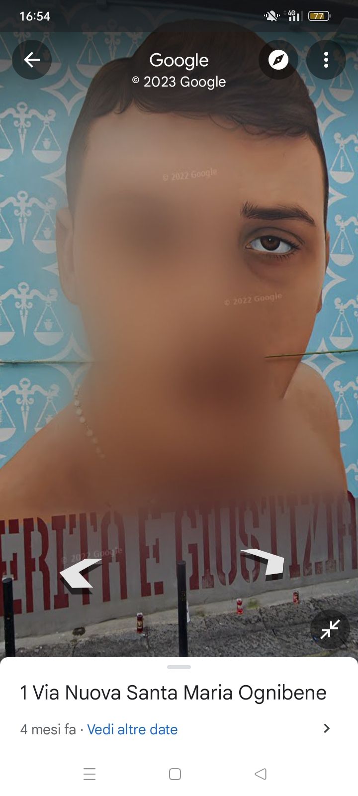 2023. La foto scattata da google maps immortala il murales di Ugo Russo realizzato da Leticia Mandragora. Il murales che chiede verità e giustizia per l'omicidio di Ugo Russo, a causa di alcune diatribe, non è più presente ed è stato coperto dallo stesso comitato che ne aveva curato la realizzazione.